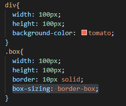 - width: 100px; height: 100px;인 div에 border: 10px 추가 시 가로/세로 크기는 120px이 됨.