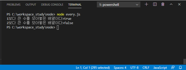 every는 ES6부터 지원하는 문법으로 특정 배열이 어떤 조건에 대해서 모두 만족하는 지를 체크한다.