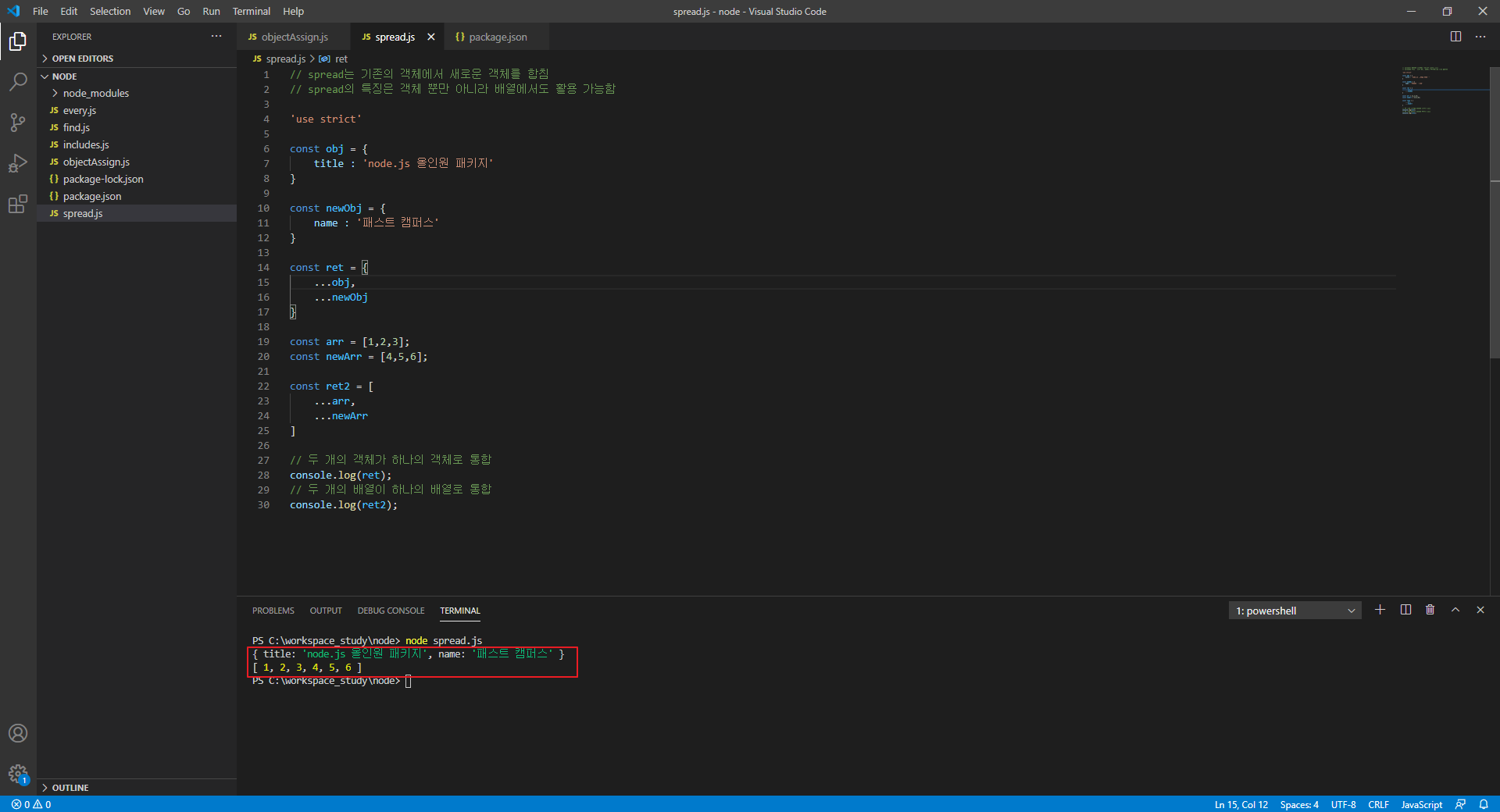 Spread만의 특징은 객체 뿐만 아니라 배열에서도 활용이 가능하다.