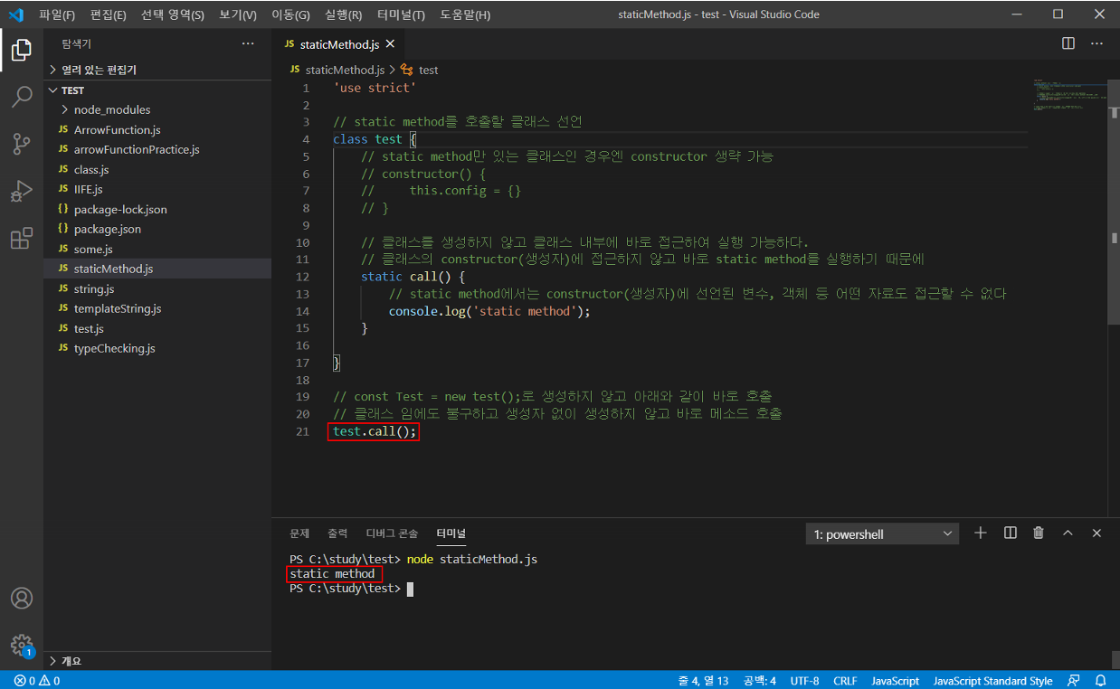// const Test = new test();로 생성하지 않고 아래와 같이 바로 호출
