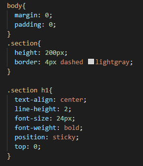 - position: sticky가 적용된 타이틀 부분이 스크롤을 내릴 때 화면 상단에 고정된 채 같이 내려오다 section이 끝나면 멈추고, 이후 section 영역이 달라지면 해당 section의 타이틀이 스크롤을 따라 내려옴.