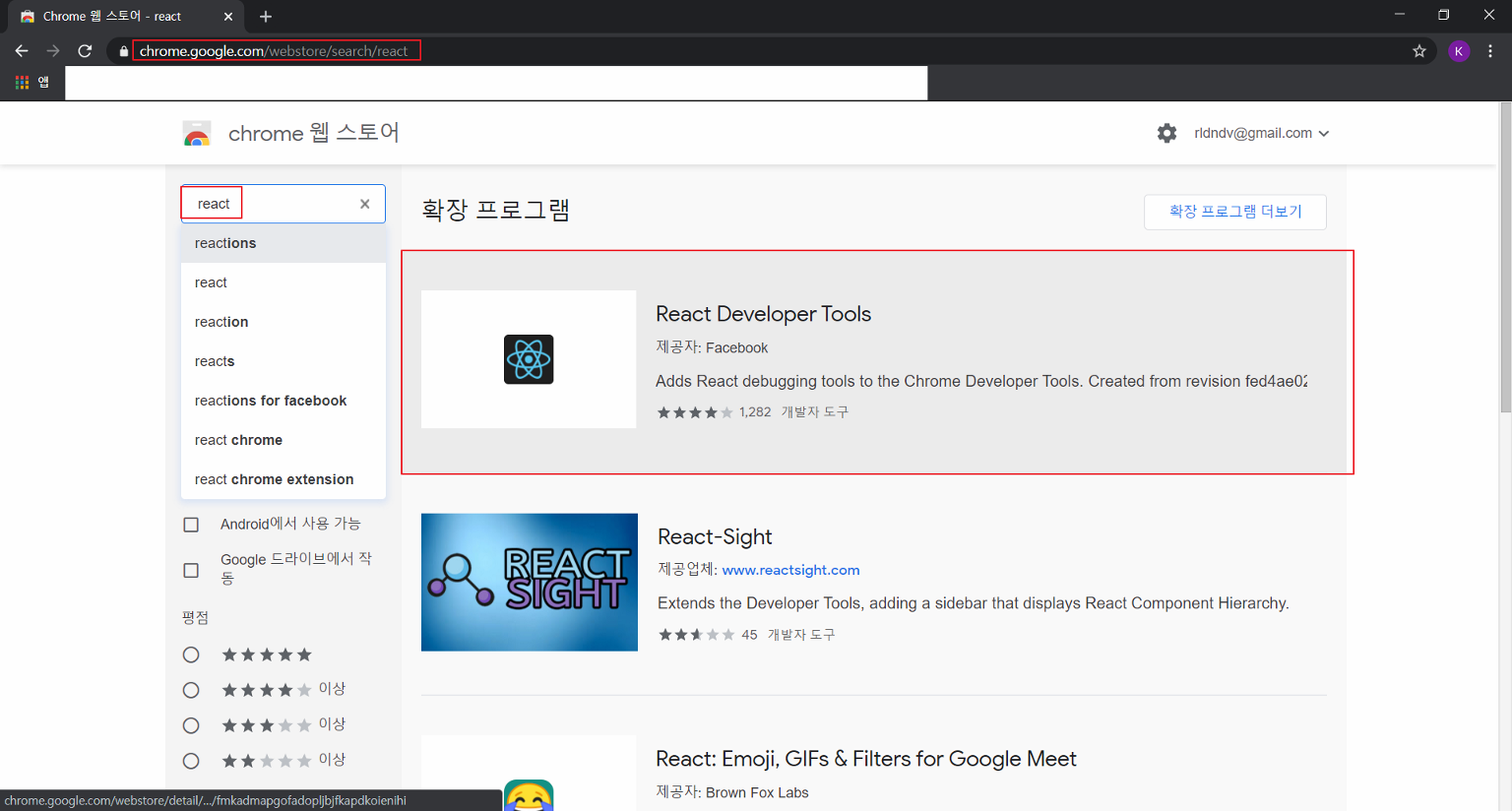 chrome dev tool 중 React Developer Tools 설치