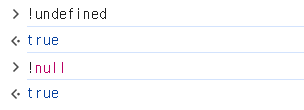 이게 작동하는 이유는 undefined와 null이 Falsy한 값이기 때문이다. 그리고 Falsy한 값 앞에 느낌표를 붙여 주면 true로 전환된다.