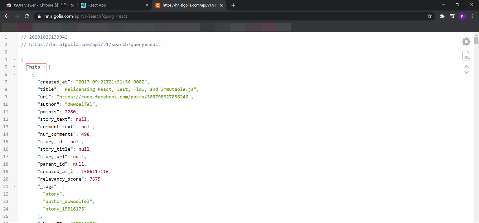 // hits는 가져올 api에서의 데이터