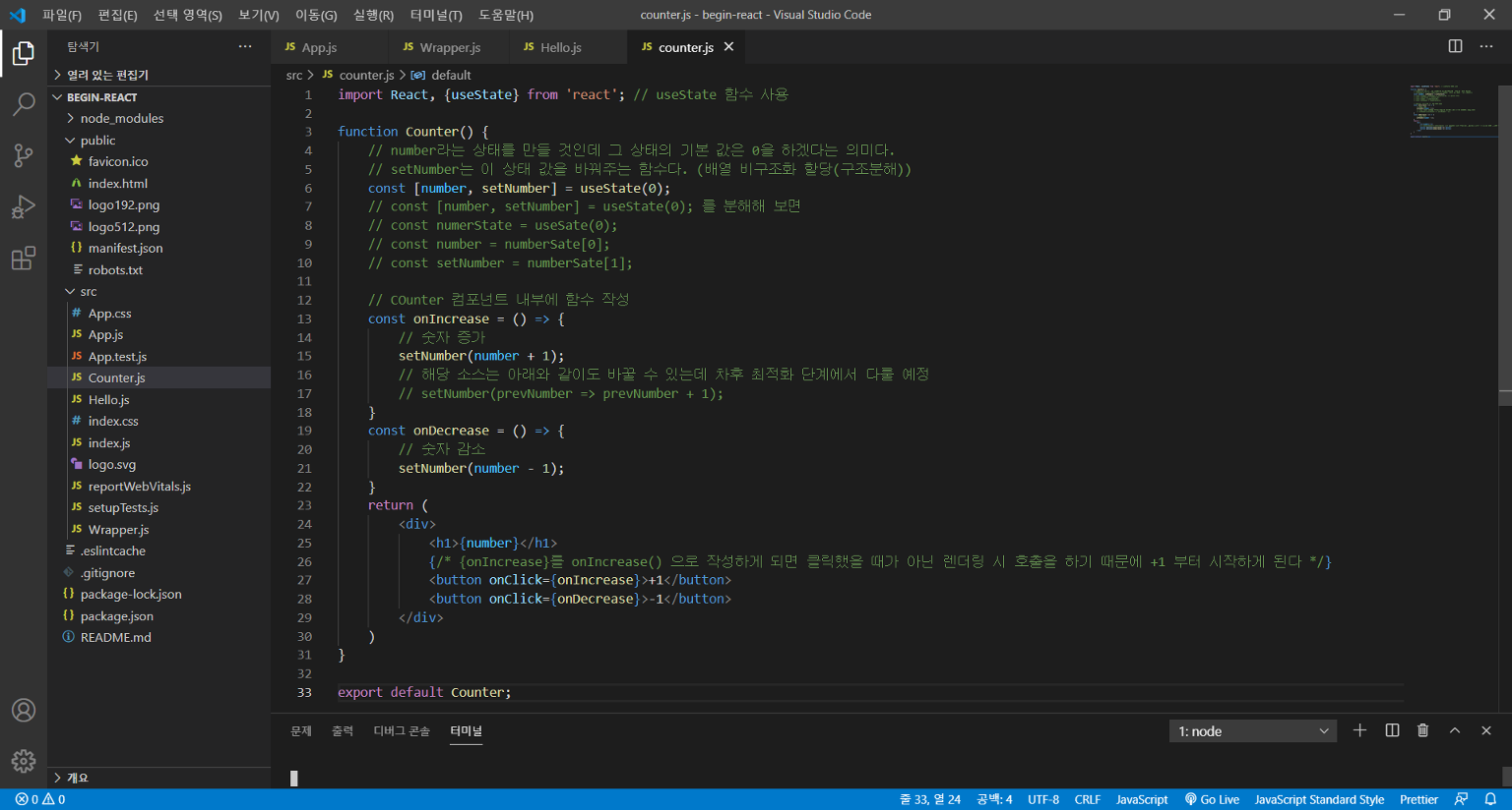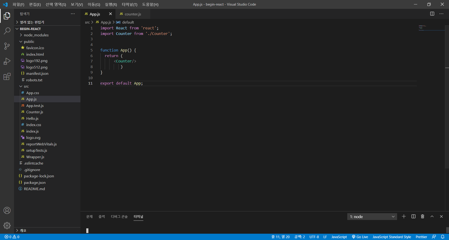 먼저 Counter.js 파일을 생성 후 아래와 같이 소스를 작성한다.