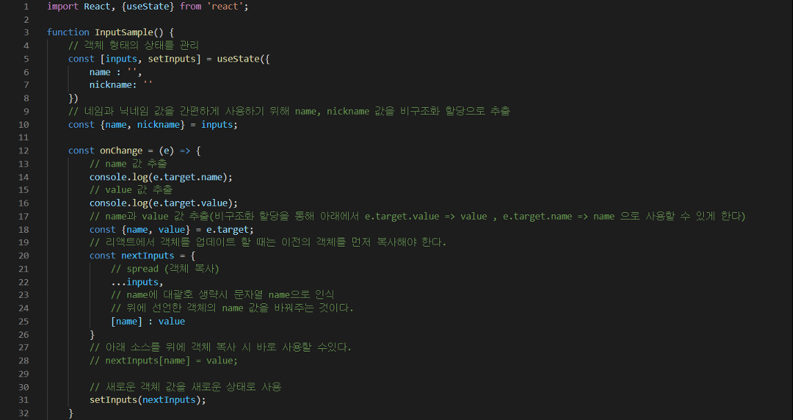 // 리액트에서 객체를 업데이트 할 때는 이전의 객체를 먼저 복사해야 한다.