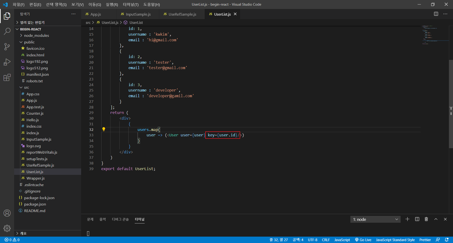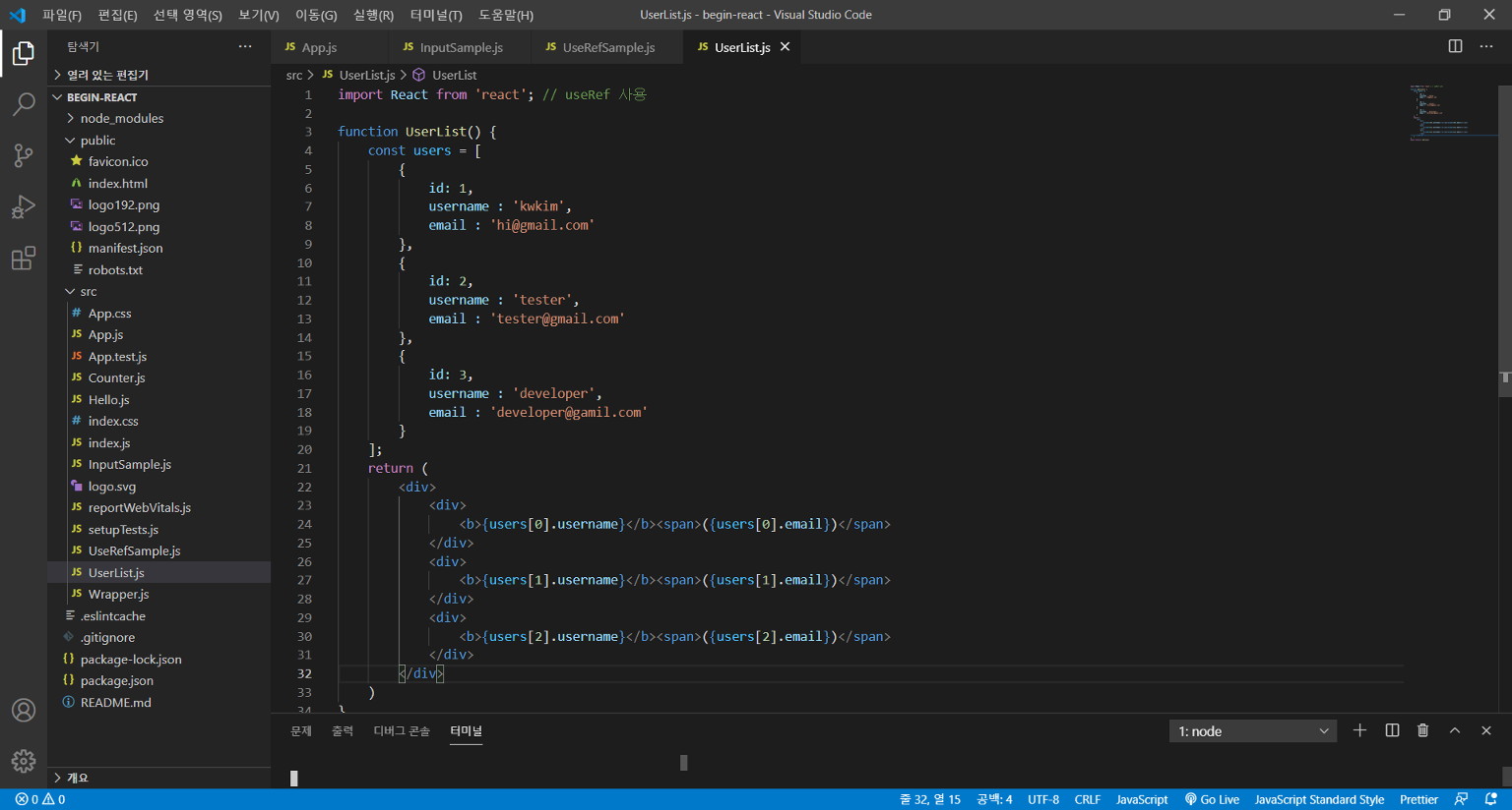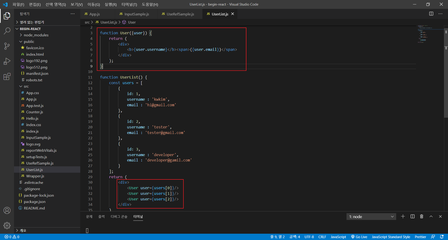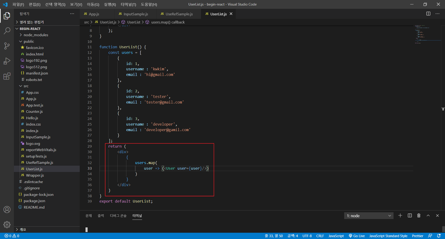 먼저 UserList.js 파일을 생성하고 아래 소스를 코딩한다.