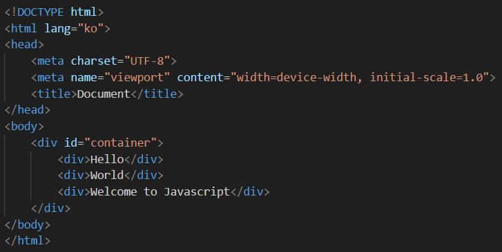 // 5. container div에 <div>Welcome to Javascript</div> 삽입