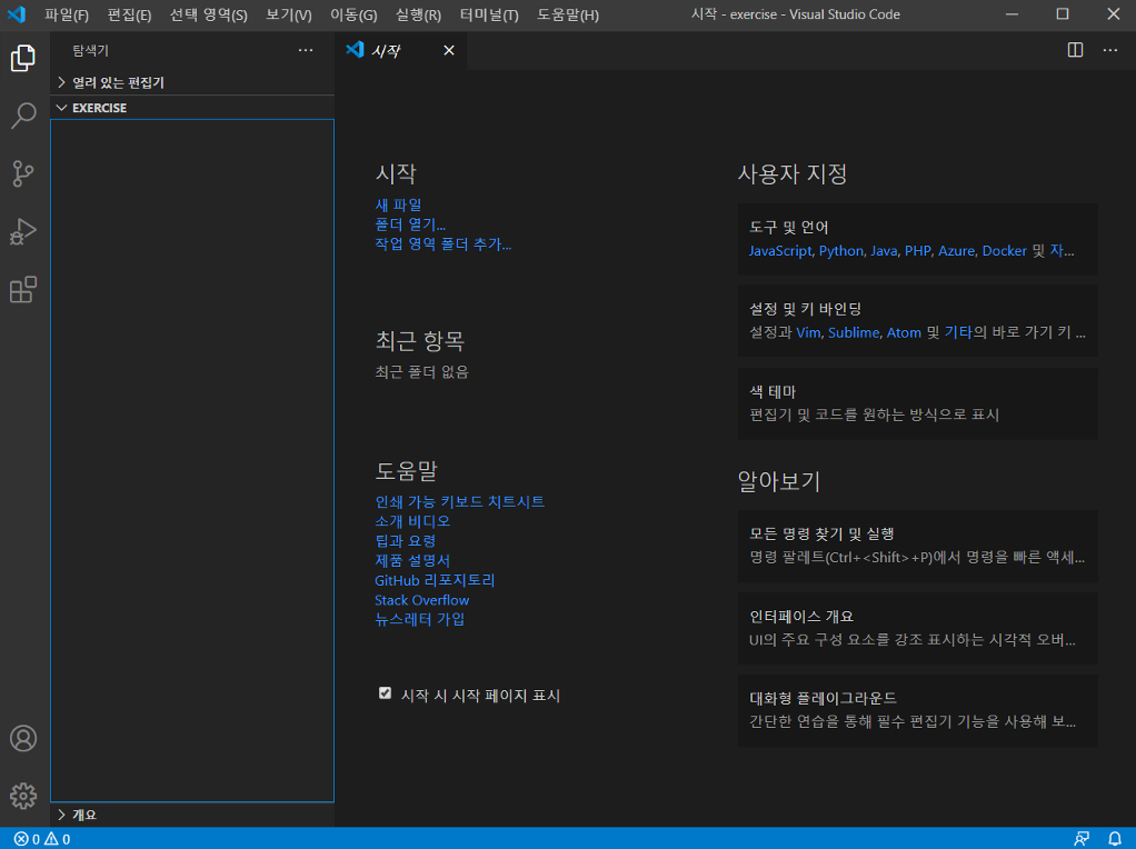예시에서는 폴더명을 exercise라고 만들었다.