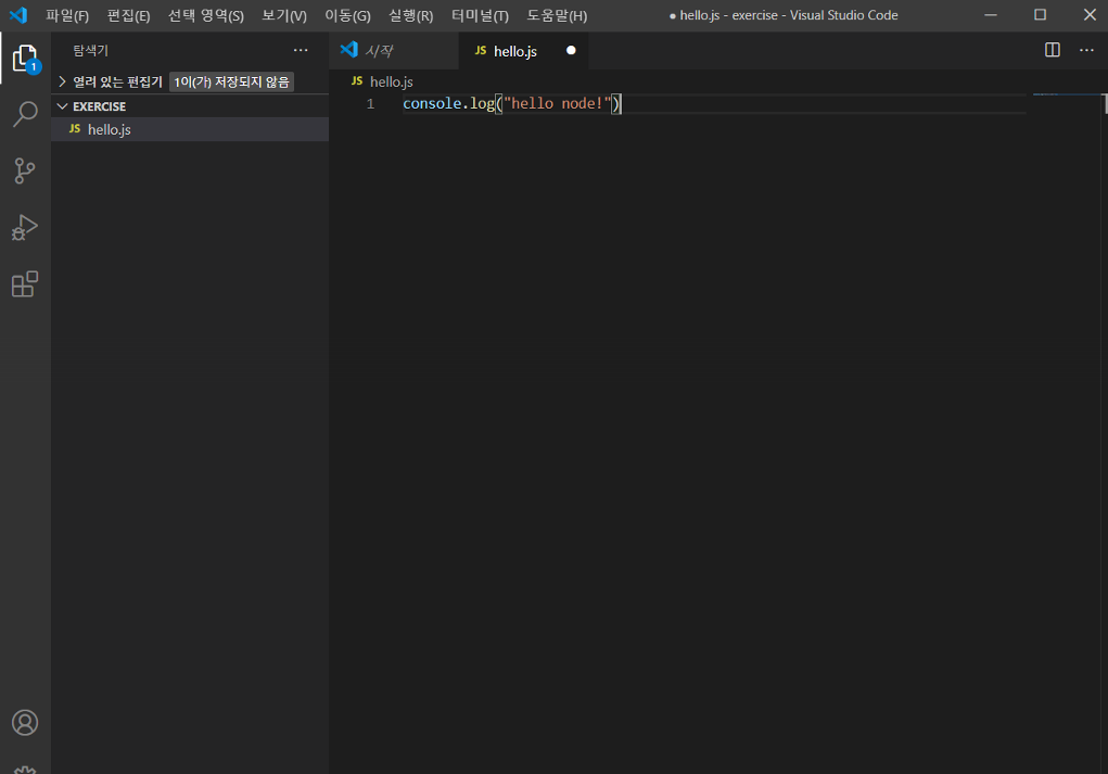 [node] 'hello node!' 출력하기