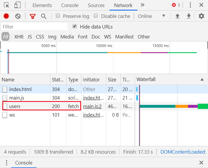 개발자 도구의 Network 탭에 보면 fetch를 통해 얻어 온 데이터를 확인할 수 있다.