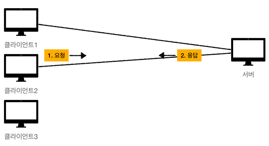 - 클라이언트는 서버와 소켓 연결을 한 다음 필요한 자원을 요청/응답으로 다운로드 받는다.