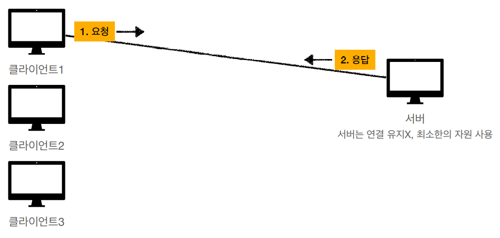 - 연결을 유지하지 않는다면 서버의 자원을 효율적으로 사용할 수 있다.