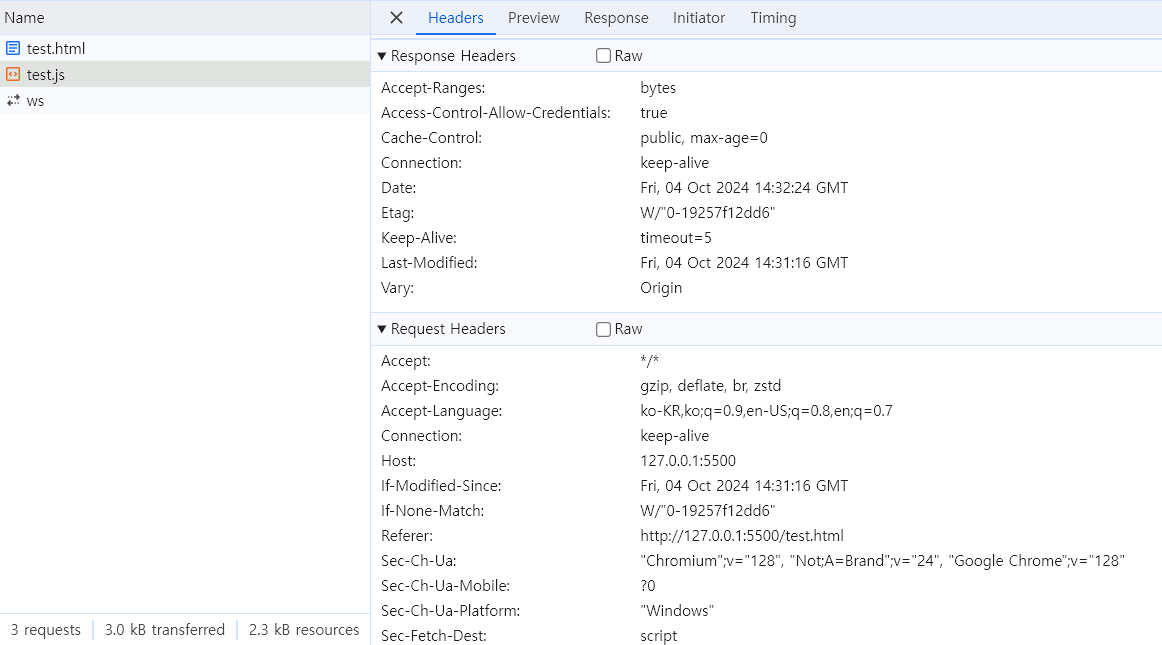 개발자 도구의 네트워크 창에서 서버로부터 다운 받은 파일을 눌러 보면 아래와 같이 Headers 탭에 적혀 있는 것을 본 적 있을 것이다. 이는 클라이언트와 서버 간에 HTTP 메시지를 통해 통신한 이력이라고 이해할 수 있다.