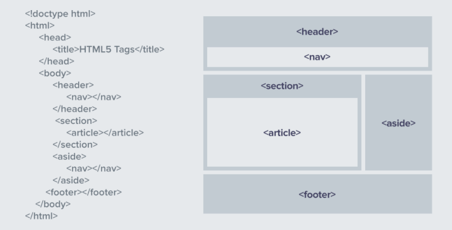 <header>, <footer>, <main> 태그는 문서의 헤더, 푸터, 메인(핵심)을 지정해 범위를 설정<article>은 매거진, 뉴스 기사, 블로그 등에 사용됨.