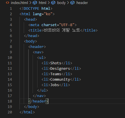 - 목록 세트를 <nav>로 묶어 사용.