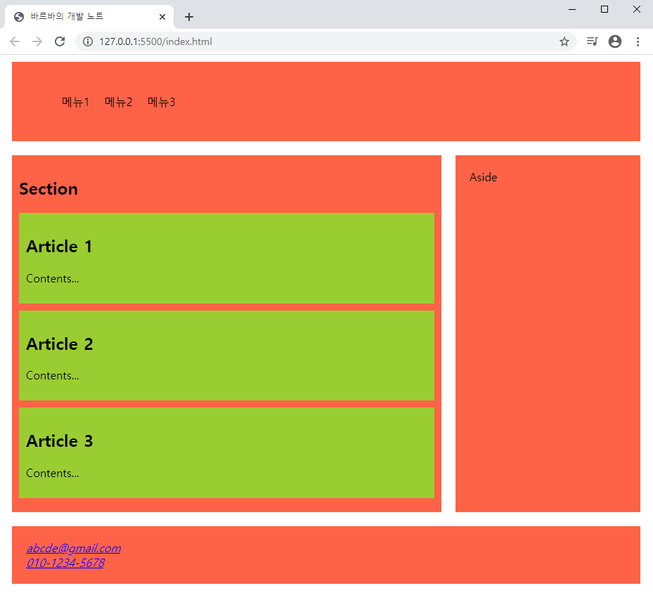 ▶ HTML Contents 구분 사용 예시