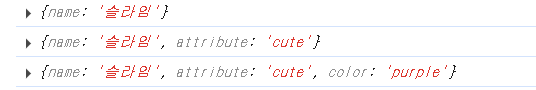 console.log(cuteSlime); // {name: '슬라임', attribute: 'cute'}