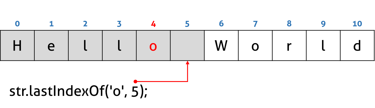 console.log(str.lastIndexOf('o', 5)); // 4