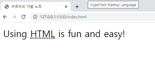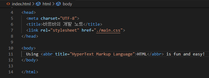 - 마우스 오버 시 title 속성을 통해 해당 약어에 대한 설명이 나타나도록 함.