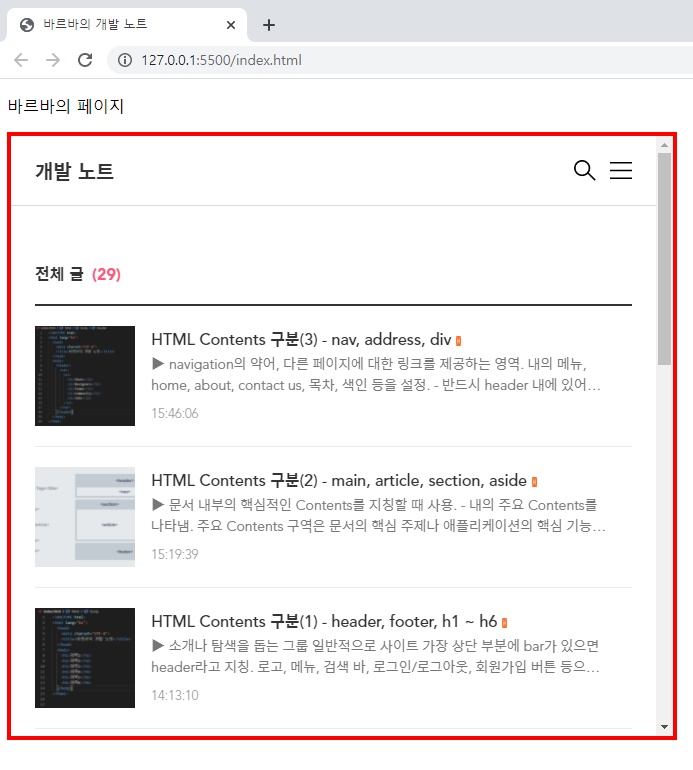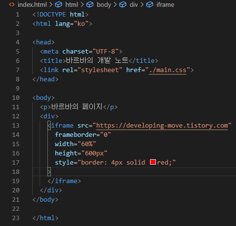 - <iframe>은 외부의 페이지에서 가져와 삽입하기 때문에 보안적인 측면에 문제가 생길 수 있음. 보안에 취약하다는 단점이 존재함.