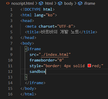- noscript.html 추가 후 <iframe>으로 기존의 index.html 가져옴.