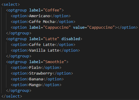 - 수동으로 <option>의 그룹을 wrapping하여 제공하는 것.