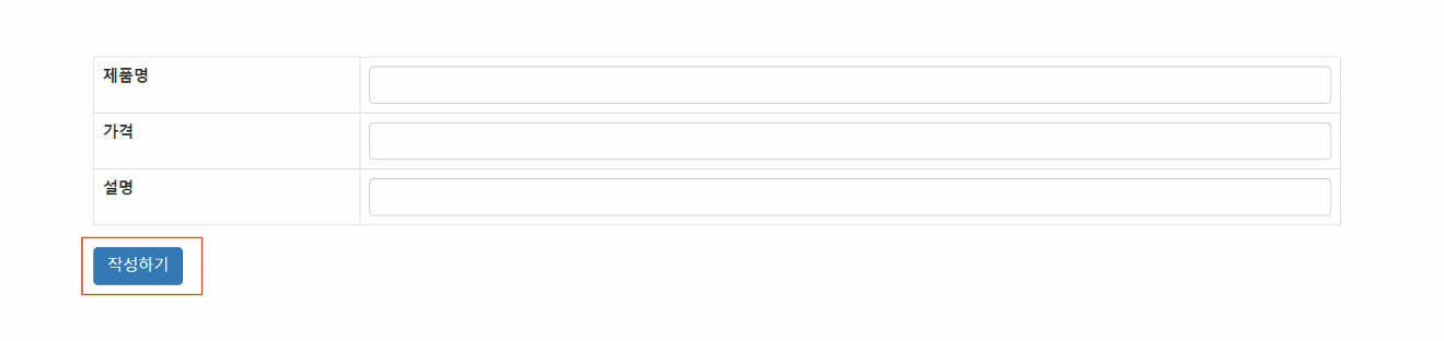 아래의 이미지와 같은 화면을 확인할 수 있고 이 화면에서 작성하기 버튼을 눌렀을 때 post 방식으로 입력한 데이터들을 전달하는 것이다.