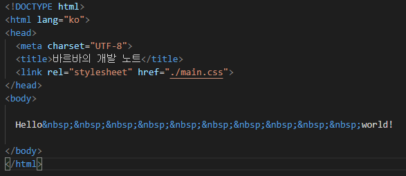 - HTML에서 띄어쓰기는 여러 번 입력되더라도 화면상에는 한 번만 압축되어 출력됨.