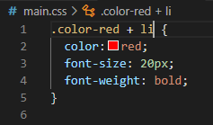 - 위의 예시에서 결과적으로는 .color-red라는 요소를 찾는 것인데 그 조건이 ul 태그의 자식이어야 한다는 것.
