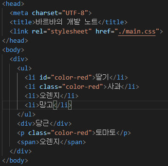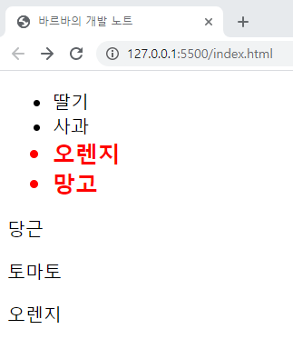 - <li class="color-red">인 사과의 입장에서는 주변에 딸기와 오렌지가 있음.