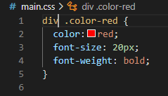 - 결과적으로 .color-red라는 요소를 찾는 것인데 그 조건이 div의 자손이어야 한다는 것.
