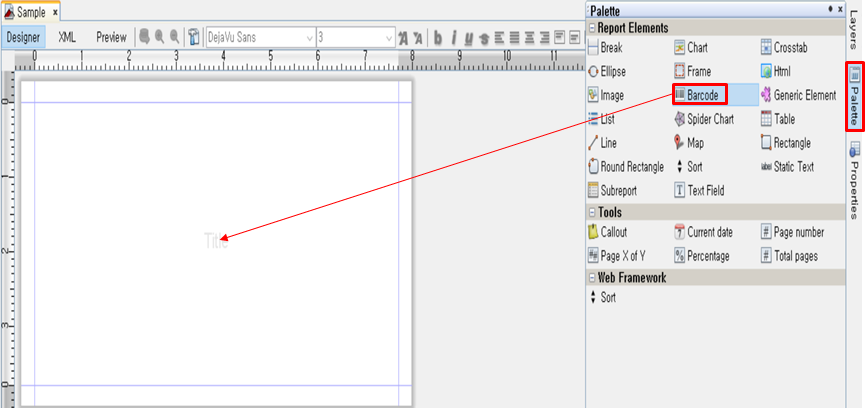 • Palette 클릭 후 Bacode를 드래그 앤 드랍.