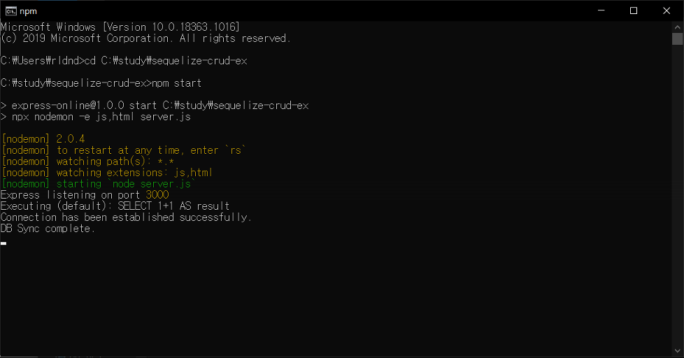 cmd창에서 스타트 해보면 정상적으로 DB 접속이 가능한 것을 확인할 수 있다.