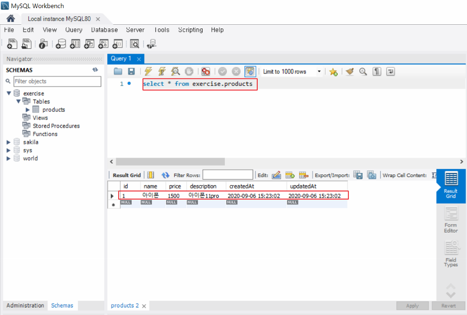 Workbench에서 해당 테이블 조회 시 정상적으로 인서트 되었음을 확인할 수 있음.