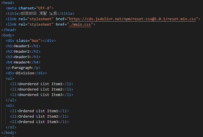 - 모든 브라우저가 가지고 있는 기본 스타일을 없애고 내가 만드는 스타일을 새롭게 채워 넣는 용도로 사용.